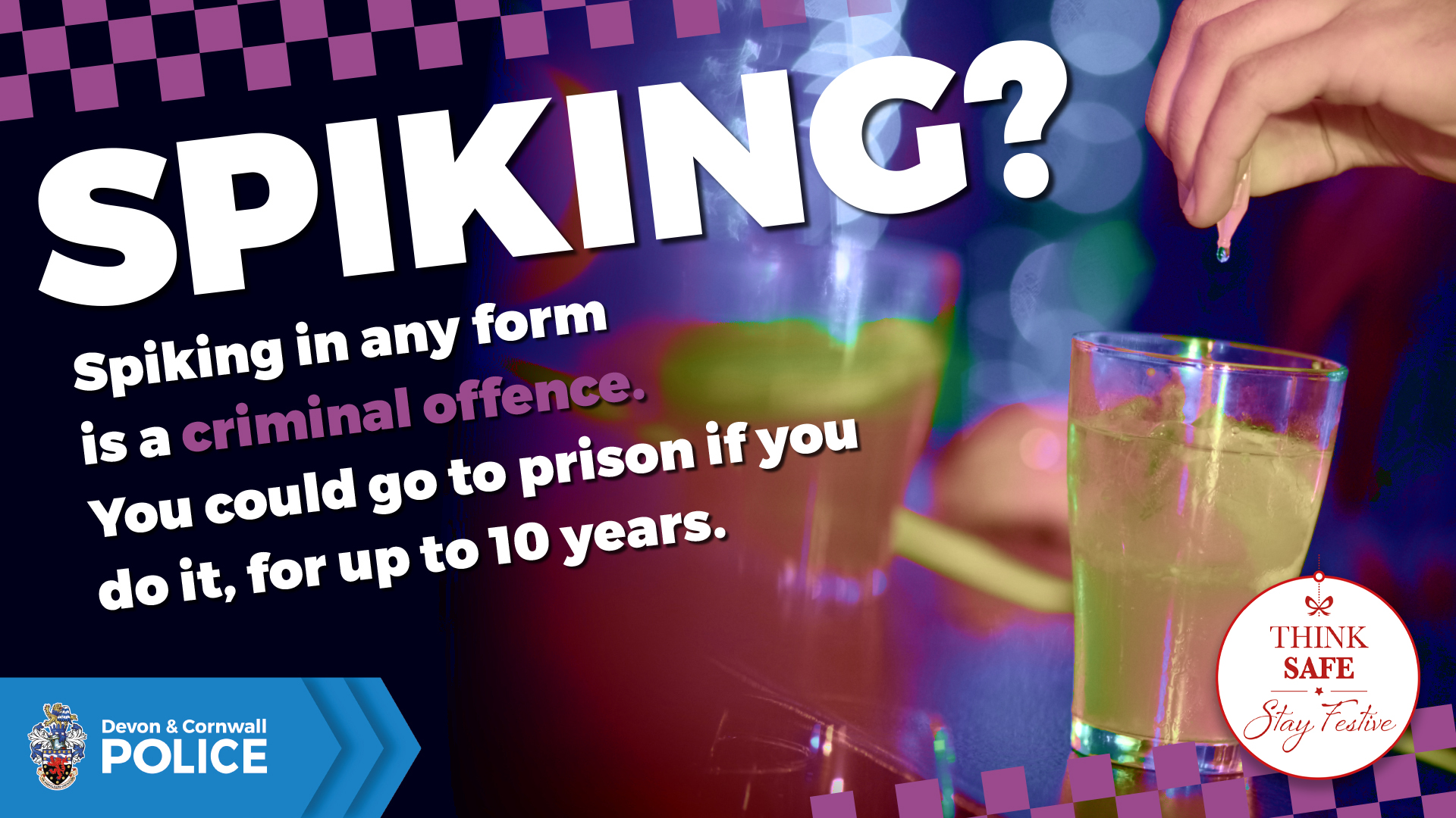 Devon & Cornwall Police warn drink spikers this Christmas
