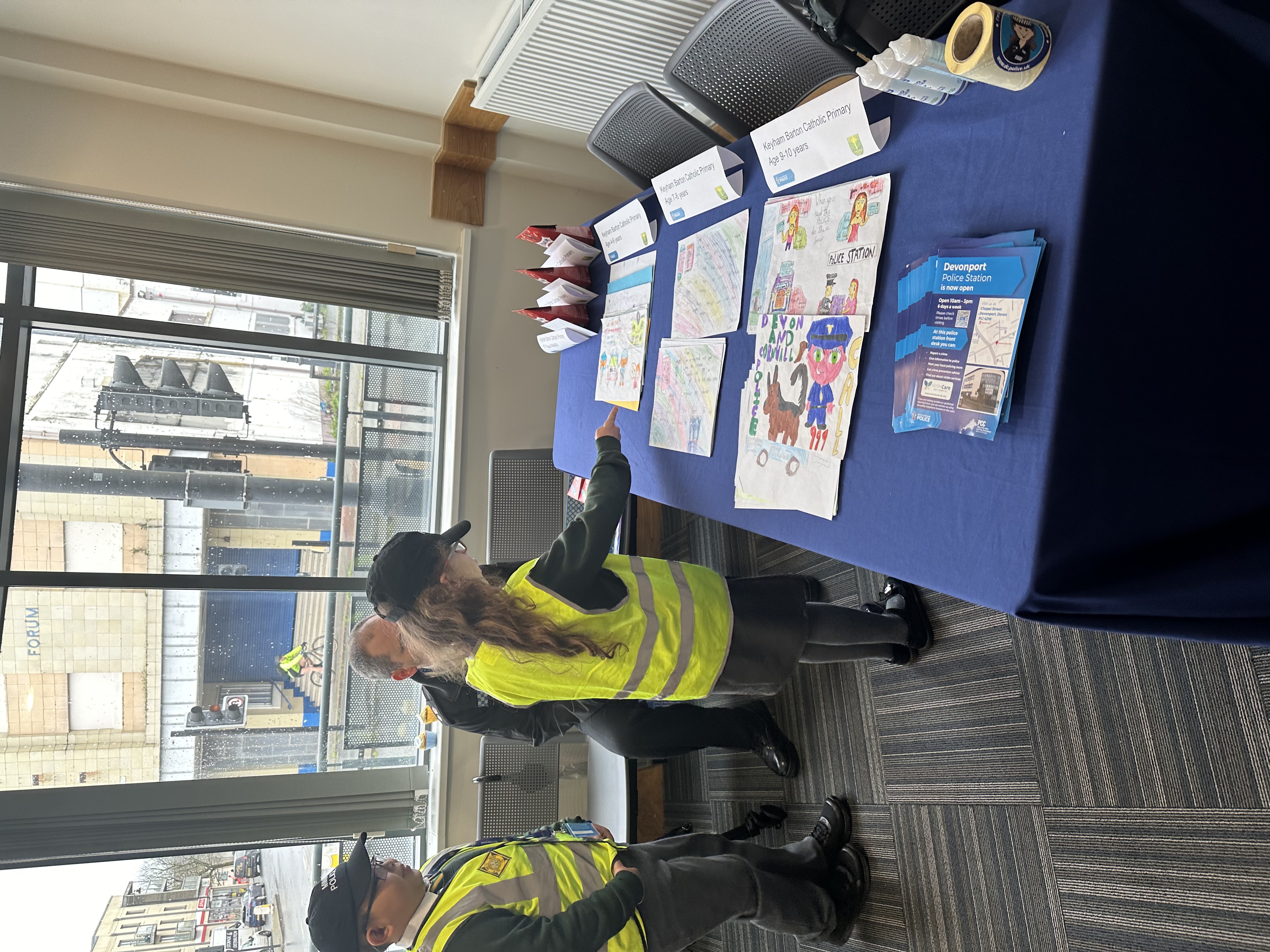 The Mini Police programme is currently being run at Keyham Barton Primary school. As part of the recent official opening of the Devonport Public Enquiry Office (PEO), students of all ages were asked to design a poster to raise awareness of why and how people should contact the police. During the PEO opening, a group of judges selected a winning poster from each year group. Each of the winning posters has been displayed in the PEO.