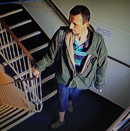 “The latest CCTV image shows him wearing dark blue knee length shorts, a dark green jacket over a brown jumper, a blue polo shirt with light blue stripes and black/grey coloured shoes. He was carrying a bright orange rucksack.”