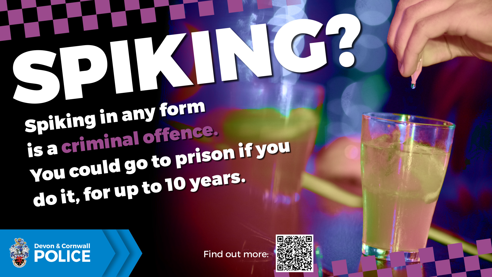 Further information about spiking and how to report it can be found on the Devon & Cornwall Police website: www.devon-cornwall.police.uk/spiking