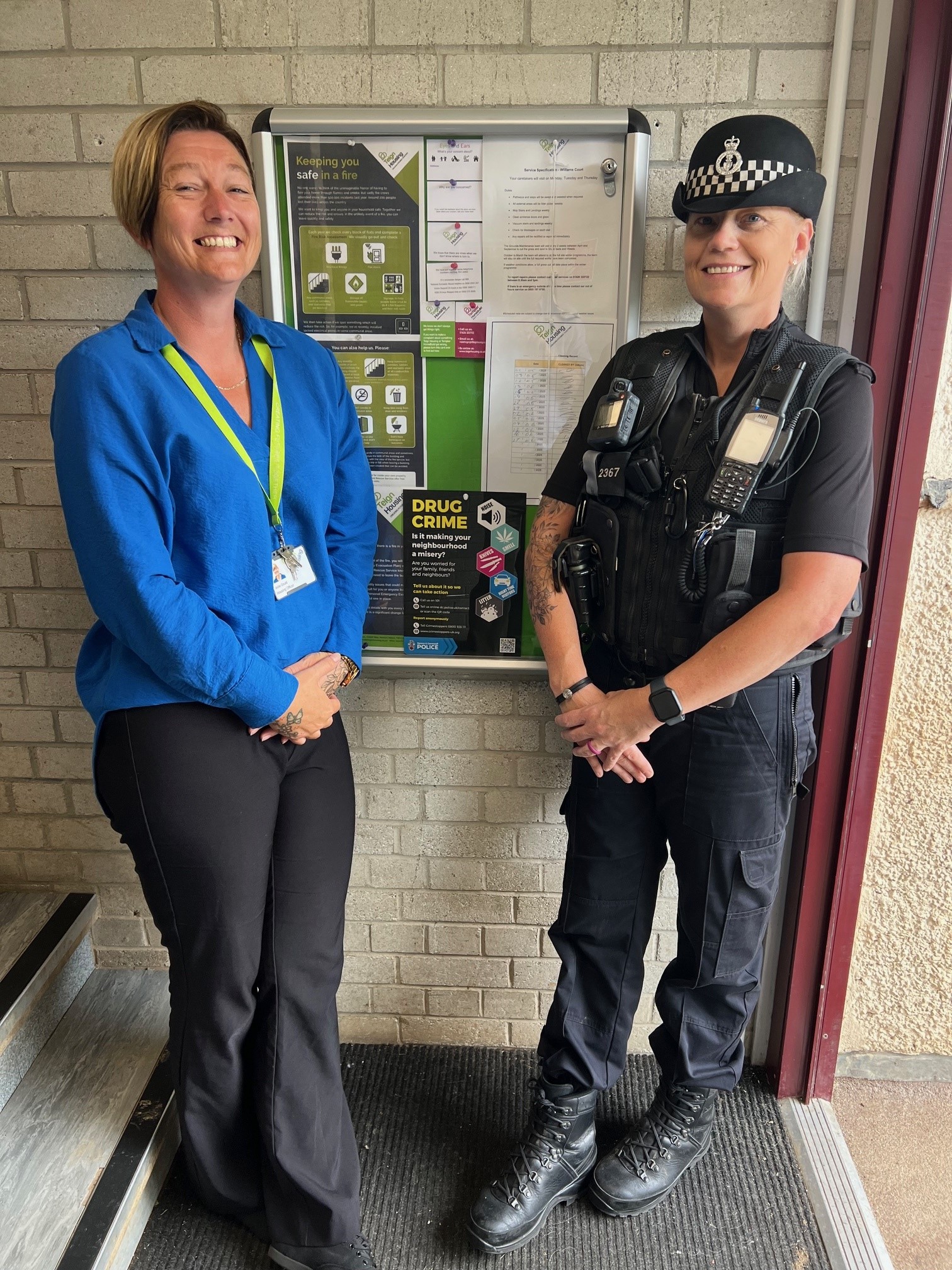 - Jodie Gould, Community Housing Officer for Teign Housing and Neighbourhood Beat Manager PC Claire Hurrell with new drugs reporting poster.