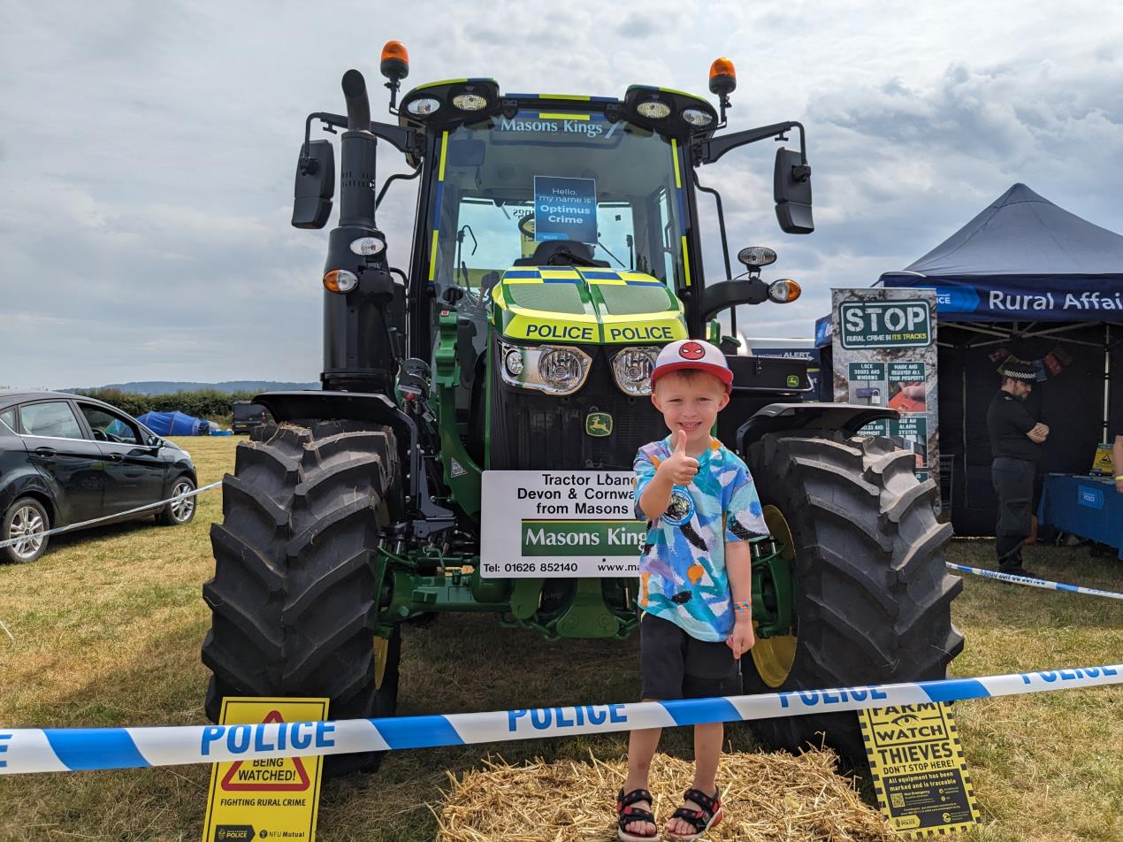 The John Deere tractor has been loaned to Devon & Cornwall Police free of charge by local dealership Masons Kings. It will be rolled out at local agricultural shows across Devon over the summer as part of a wider effort to increase community engagement within the rural areas of Devon and Cornwall.
