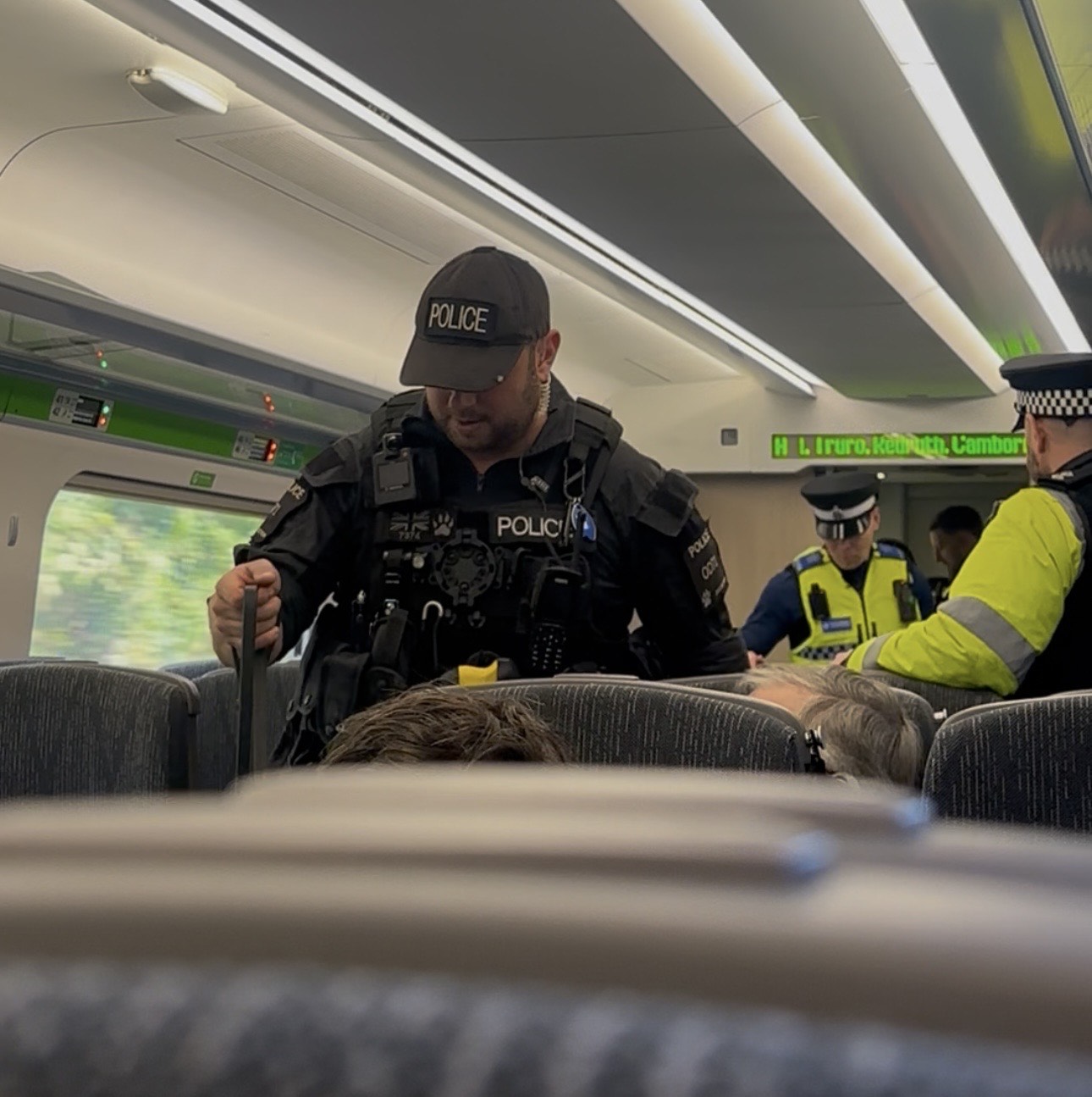 During the exercise officers and passive drugs dog ‘Jasper’ carried out high-visibility patrols in the carriages of trains bound for South East Cornwall from Plymouth.