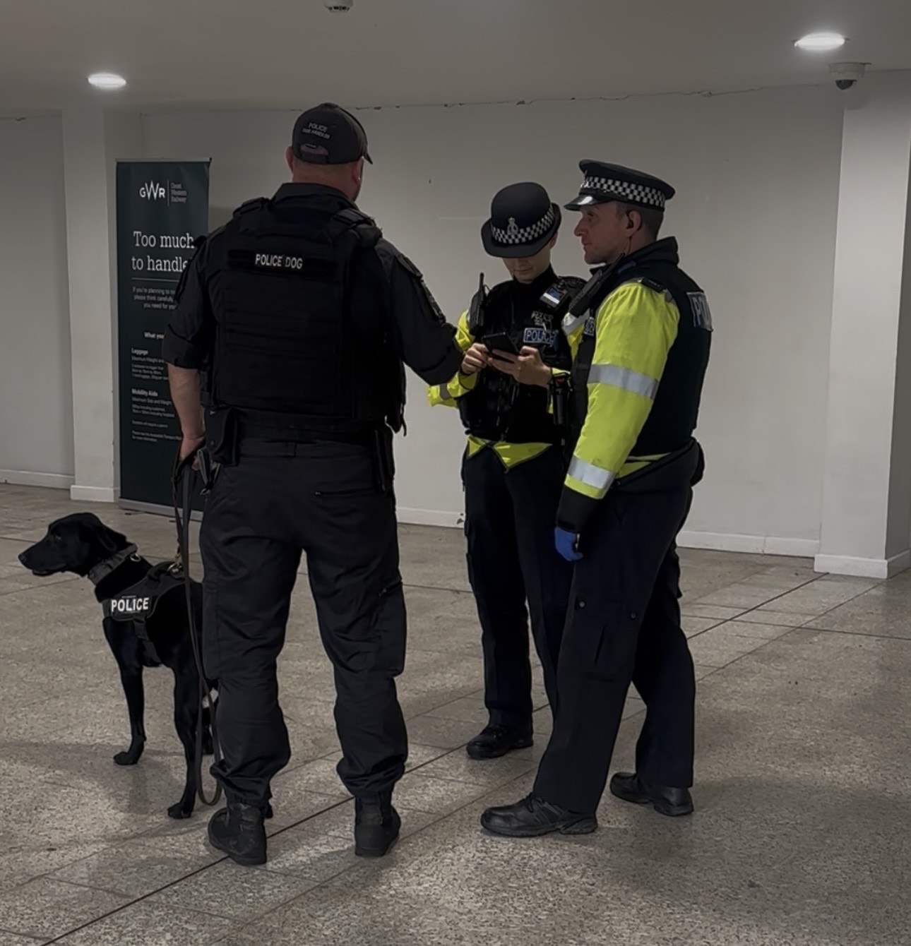 PD Jasper was also positioned at ticket barriers to sniff out the presence of drugs on anyone entering or leaving the train station.